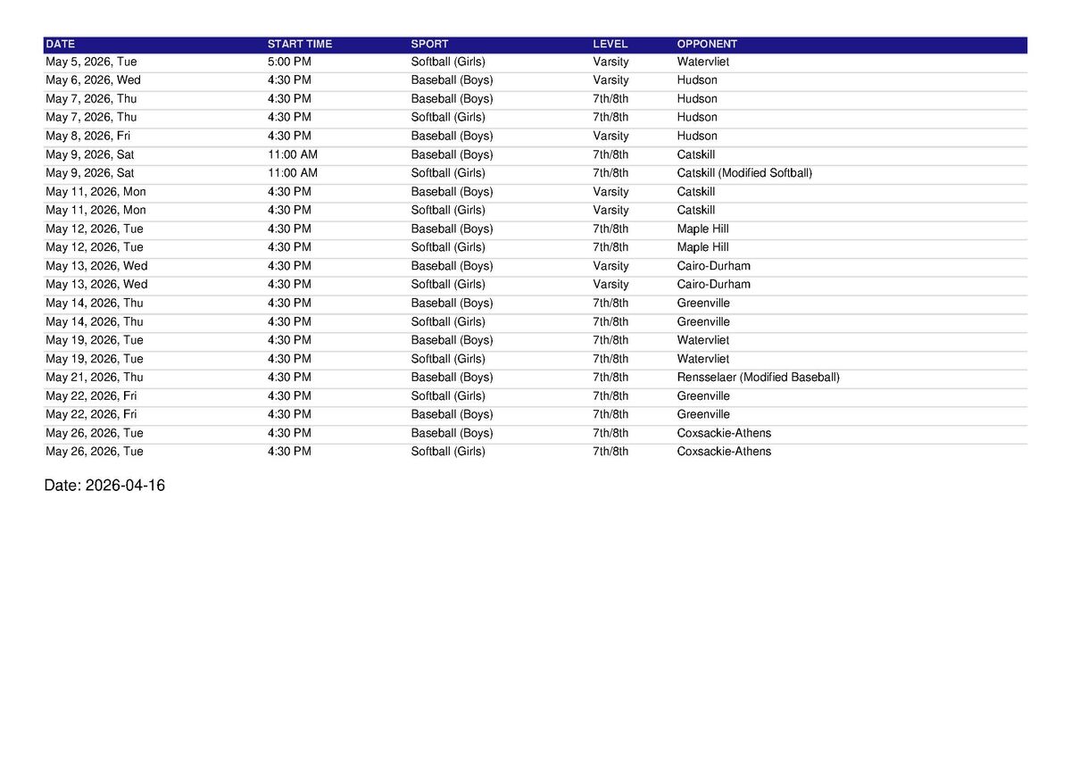 Baseball/Softball 2025-2026 Schedule